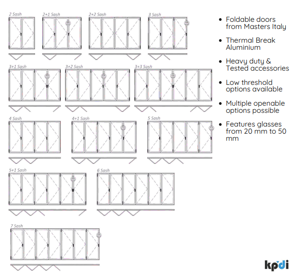 Masters Hinges and Rollers of the Topflex system allow the creation of folding windows with a maximum load of up to 120 kg per sash, with dimensions that can reach 3.50 m in height and a configuration of up to 8 consecutive sashes up to 1200 mm wide.