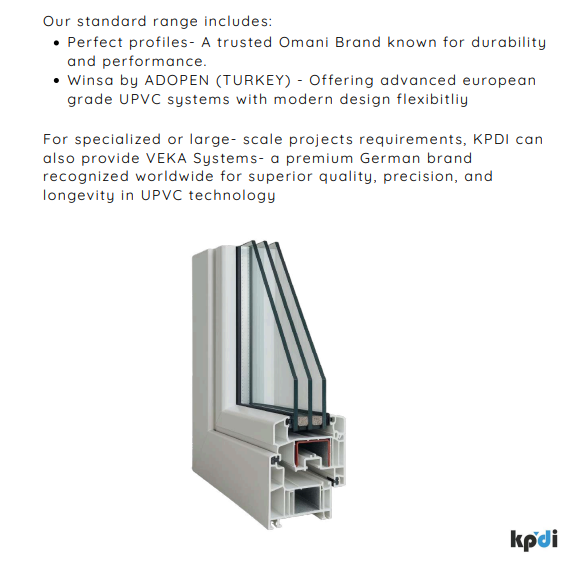 KPDI offers a comprehensive range of high-quality UPVC window solutions sourced from leading regional and international manufacturers.
